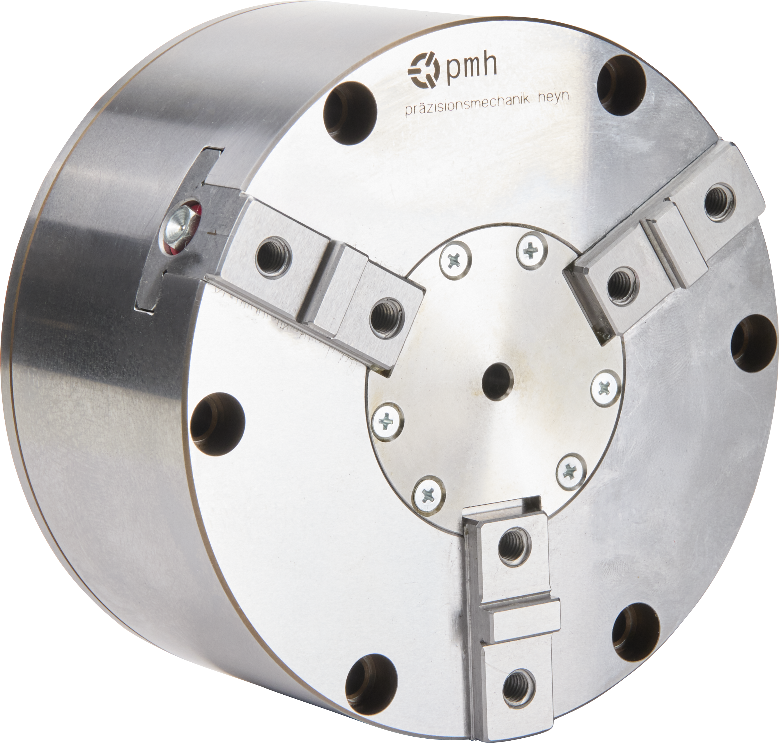 Unsere Vorderendfutter zeichnen sich durch ihre hohe Präzision, gepaart mit einzigartiger Feinfühligkeit aus. Durch die erreichbare Spannwiederholgenauigkeit kleiner oder gleich 2µ sind sie prädestiniert für hochgenaue Spannaufgaben bei Schleifen, Hartdrehen und Hartfräsen. Ein weiterer Aspekt ist die fein dosierbare Spannkraft, die das Verspannen der Werkstücke minimiert. Wir bauen die Futter in verschiedenen Baugrößen und Backenhüben, mit und ohne Durchgangsbohrung und ebenfalls mit variierbarer Anzahl an Backen. Außerdem haben Sie die Wahl zwischen einer Betätigung über einen Hinterendzylinder oder pneumatisch über unser Luftzufuhrrohr mit integriertem Zylinder.